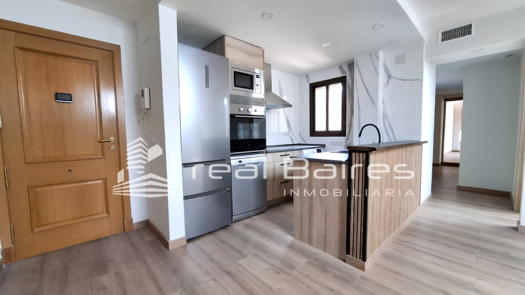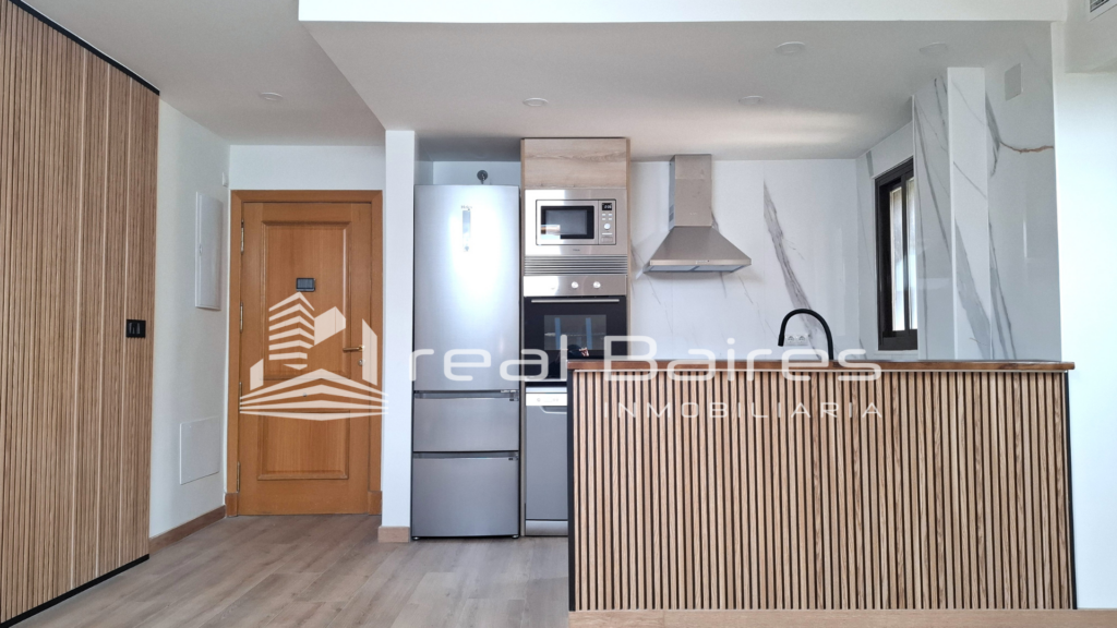 Dispone de una cocina-comedor integrada y totalmente equipada a estrenar: horno, vitro campana, nevera, lavadora y lavavajillas.