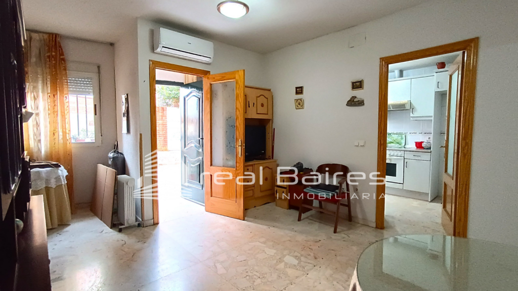 Este luminoso bajo exterior de casi 60 m², se caracteriza por su gran ubicación y proximidad a diferentes tipos de servicios. Consta en su acceso con un salón-comedor de unos 16 m² con muebles, un hueco al lado de su puerta principal: ideal para un armario empotrado. Una Cocina independiente amueblada de unos 7,5 m² aprox. con horno, vitro y campana. Dos habitaciones ambas con armarios empotrados: una de 10 m² y la principal más amplia de 15,5 m². Finalmente un baño completo con un cómodo plato de ducha. El piso cuenta con suelos de terrazo, puertas de roble, paredes en gotelé y aire acondicionado con bomba de calor en el salón. Piso situado andando: a 12’ de la Estación de tren Humanes, a 9’ del Centro de Salud, a 2’ del Ayuntamiento y a sólo 1’ de Colegios Públicos, Parques y parada de autobuses. Todo eso más diferentes comercios cercanos, como supermercados, farmacia a dos calles, bares y restaurantes. La dirección del anuncio es solo orientativa a la zona.