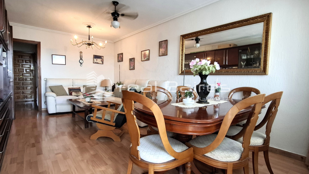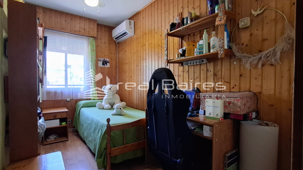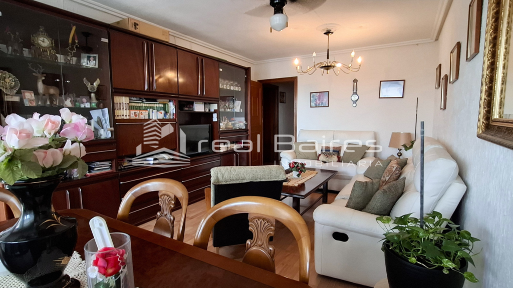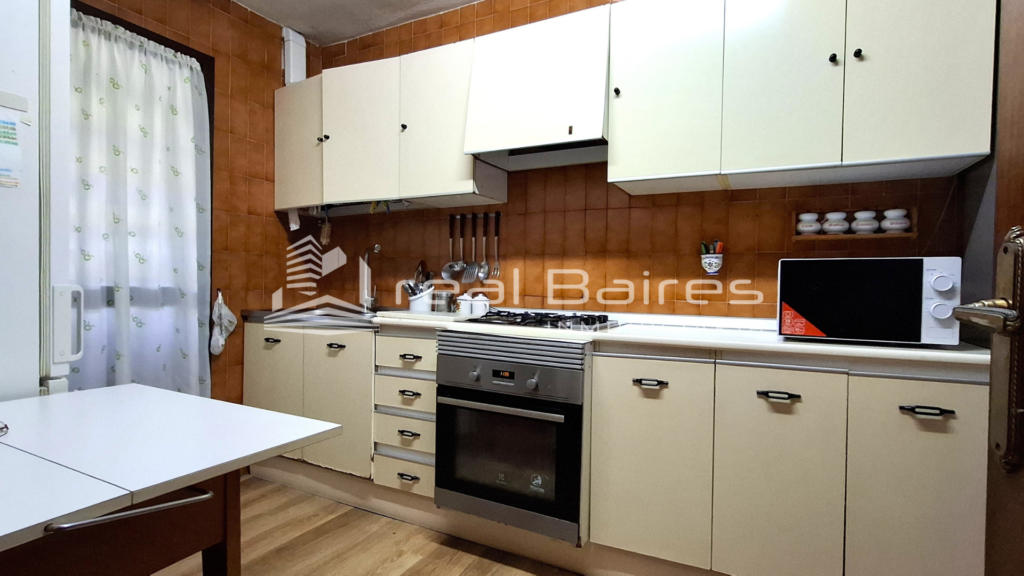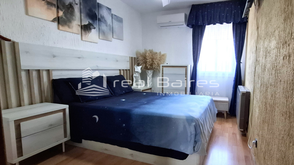 Esta vivienda construida en 1977 de 103 m², se distribuye con un pasillo recibidor, una cocina independiente amueblada con tendedero, un salón-comedor de casi 20 m² con aire acondicionado con bomba de calor, una terraza acristalada y una segunda terraza al aire libre ideal para relajarse y disfrutar de sus vistas. Además cuatro habitaciones, dos de ellas dobles, todas con aire acondicionado y armarios empotrados y finalmente un baño con plato de ducha. Posee suelos de tarima, calefacción con acumuladores de calor, cinco aires acondicionados (todos con bomba de calor), y cocina de gas con bombona.